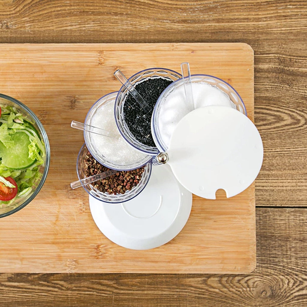 5 Section 360° Rotating Vertical Seasoning Box Plastic Pickle Tower | Spice Rack | Achar Stand for Dining Table | Condiment Set | Multipurpose Container (5 Layer with 5 Plastic Spoon / 1 Set)