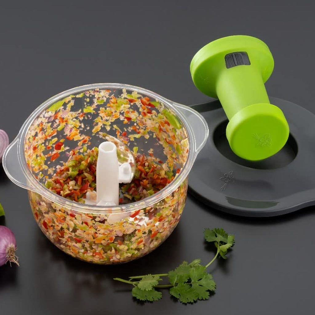 • Makes food preparation fun and easy. Just pull the cord a few times to chop/mince your ingredients.